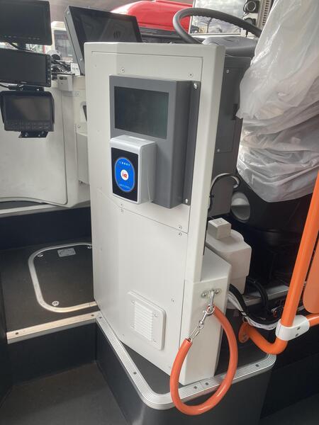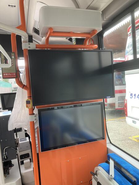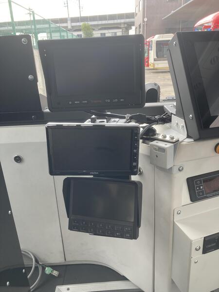京王バス(株)が運行する自動運転バスに、ワンマン運行用の機器を取り付ける工事を行いました。